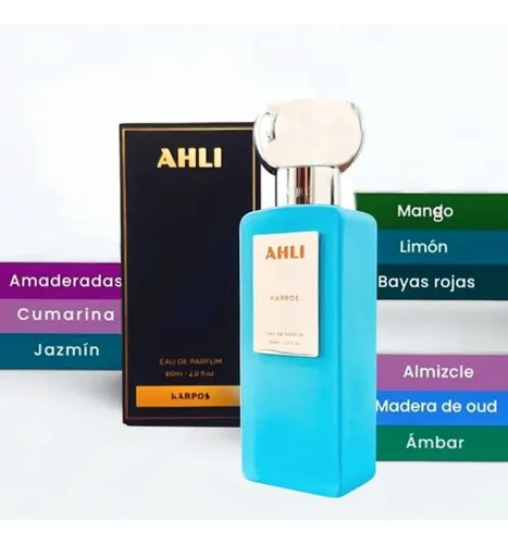 Ahli Karpos Este perfume se destaca por su sofisticación y elegancia, ideal para quienes buscan una fragancia única y profunda. Notas principales: Notas de salida: La apertura de Ahli Karpos es fresca y luminosa, destacando principalmente las notas cítricas, con un toque ligero de bergamota y limón, que ofrecen una sensación de frescura inicial. Esta frescura se mezcla con la manzana verde, que aporta un toque frutal y crujiente, generando una sensación de ligereza en el principio del perfume.