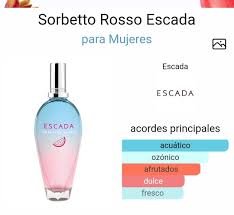 Es una fragancia de la familia olfativa Aromática Frutal para Mujeres. Sorbetto Rosso se lanzó en 2018. Las Notas de Salida son pera, calone y naranja tangerina; las Notas de Corazón son sandía, notas acuosas, fresa, manzana, sal de mar, flor de tiaré, hediona y rosa; las Notas de Fondo son praliné, almizcle y ámbar.