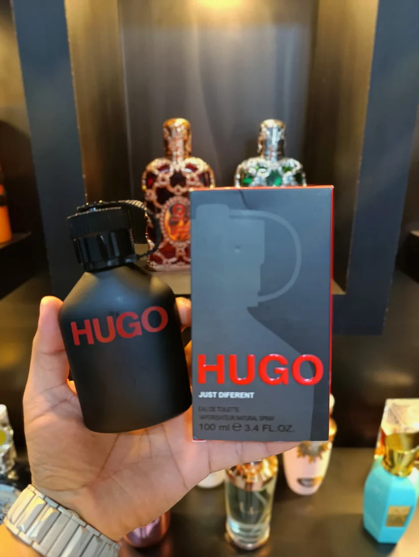 Hugo Just Different de Hugo Boss es una fragancia de la familia olfativa Aromática para Hombres. Hugo Just Different se lanzó en 2011. Las Notas de Salida son menta y manzana Granny Smith; las Notas de Corazón son albahaca, fresia y cilantro; las Notas de Fondo son cachemira, pachulí, ládano y incienso de olíbano (franquincienso).
