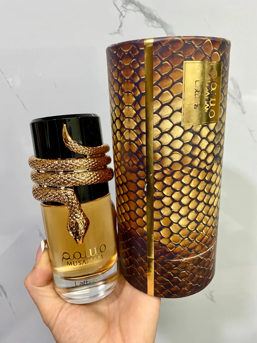 Musamam de Lattafa Perfumes es una fragancia de la familia olfativa Amaderada Aromática para Hombres y Mujeres. Esta fragrancia es nueva. Musamam se lanzó en 2022. Las Notas de Salida son azafrán, mandarina italiana y lavanda; las Notas de Corazón son Amberwood, cedro de Virginia y geranio; las Notas de Fondo son Akigalawood, incienso y ládano.