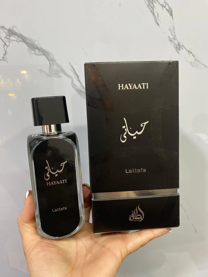 Hayaati de Lattafa Perfumes es una fragancia de la familia olfativa Amaderada Aromática para Hombres y Mujeres. Hayaati se lanzó en 2020. Las Notas de Salida son manzana y bergamota; las Notas de Corazón son canela y notas amaderadas; las Notas de Fondo son almizcle y vainilla.