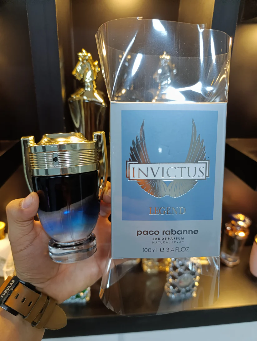 Invictus Legend de Paco Rabanne es una fragancia de la familia olfativa Amaderada Aromática para Hombres. Invictus Legend se lanzó en 2019. Invictus Legend fue creada por Domitille Michalon Bertier y Nicolas Beaulieu. Las Notas de Salida son notas marinas, sal de mar y toronja (pomelo); las Notas de Corazón son hoja de laurel, geranio y especias; las Notas de Fondo son ámbar rojo y madera de gaiac.